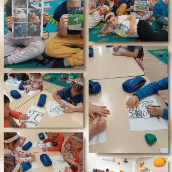 Do naszego przedszkola jeże zawitały w czwartek i dzieci dowiedziały się m.in. dlaczego jeż ma kolce, czy śpi całą zimę, co lubi sobie przekąsić na obiad. Po zabawie przedszkolaki ozdabiały jeżyki różnymi techniki ani plastycznymi.