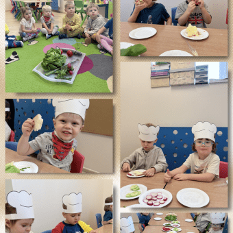 Dziś cytrynki uczyły się o zbilansowanych posiłkach, kształciły dobre nawyki żywieniowe i rozwijały kreatywność. Poznały różne kolorowe warzywa, ich smaki i zapachy. Następnie dzieci wcieliły się w kucharzy i na drugie śniadanie samodzielnie przygotowały kanapki z warzywami, o których wcześniej rozmawiali. Piękne kolorowe kanapki okazały się bardzo pyszne i szybko znikały z talerzy.