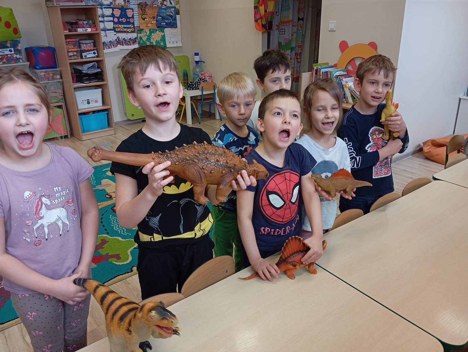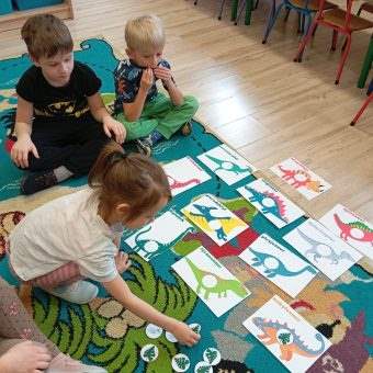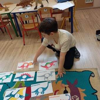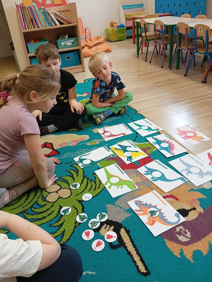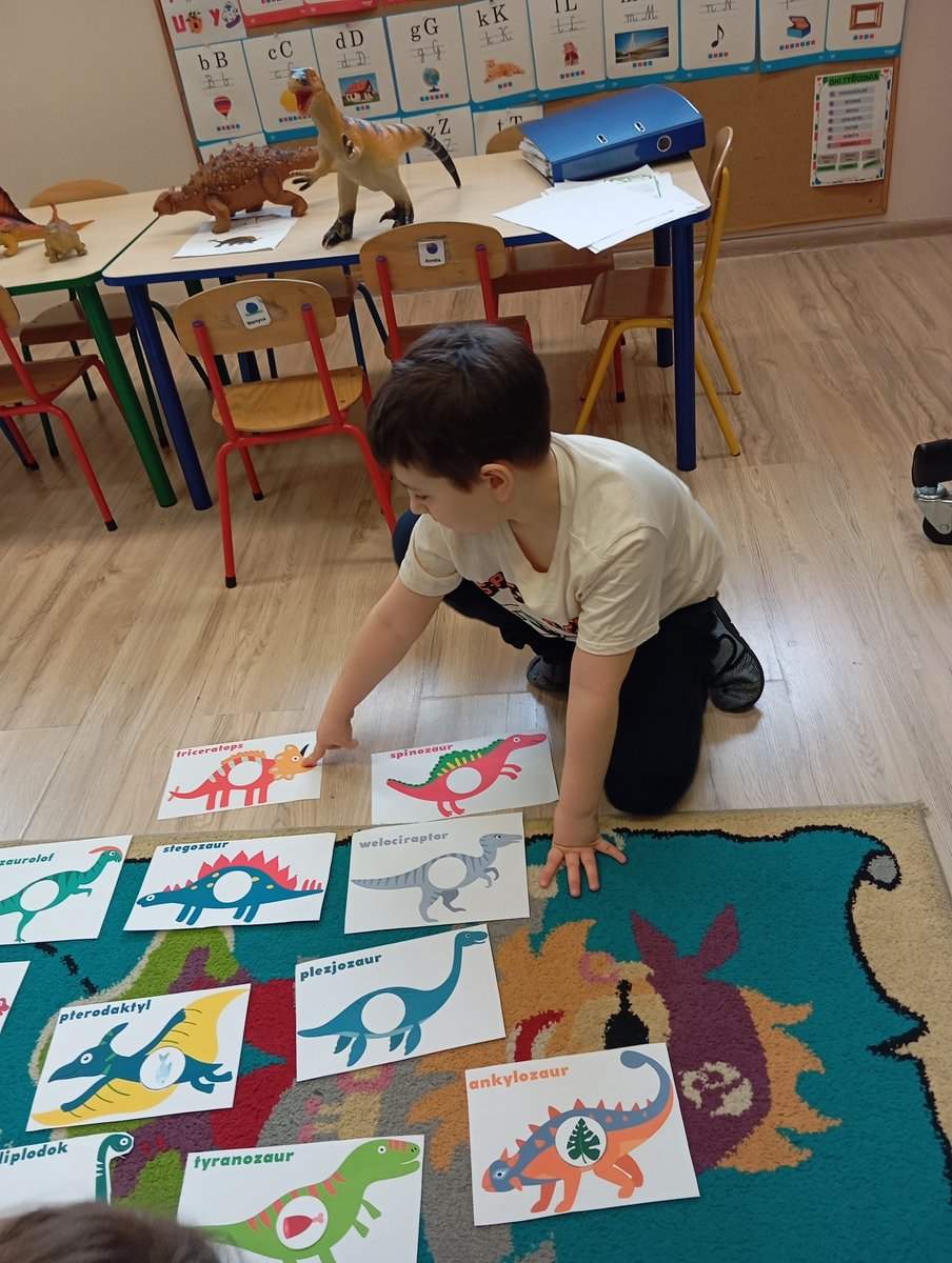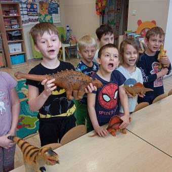 Dziś, w ramach tygodnia zajęć,, Ziemia-błękitna planeta” dzieci dowiedziały się wiele informacji na temat życia dinozaurów na Naszej planecie.