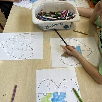 Dziś dzieci pokolorowały serca z puzzli – symbol różnorodności, zrozumienia i akceptacji. Te kolorowe serca zawisły w całym przedszkolu jako znak, że jesteśmy razem, choć każdy z nas jest inny. Zostaną z Nami na dłużej, bo Kwiecień to Miesiąc Świadomości Autyzmu💙💙🦋