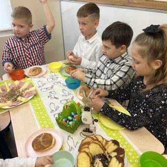 Był świąteczny stół, wspólne dzielenie się jajkiem, rozmowy o tradycjach i mnóstwo ciepła. Dzieci z wielkim zaangażowaniem pomagały w przygotowaniach i z radością celebrowały ten wyjątkowy czas.