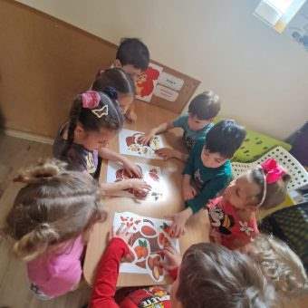 Pierwszy tydzień października zapowiadał się niezbyt ciekawie więc nasze przedszkole postanowiło dodać trochę kolorów do tej „szarawej” aury za oknem. Każda z grup postanowiła własnoręcznie przygotowywać cos zdrowego ale żeby to uczynić… najpierw dzieciaczki musiały dokonać zakupów na małym przedszkolnym straganie. Dzieci uczyły się jak ważyć owoce, porównywały, który jest cięższy, a który lżejszy. Na koniec mogły posłużyć się papierowymi monetami i zapłacić za swoje owoce.